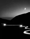Hwy 1 to Muir Beach at sunset with moon setting - Muir Beach, California 1993 - client: Pacific Gas & Electric