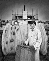 Vietnamese fisherman aboard his fishing boat - Berkeley Marina - Berkeley, California 1992 - Sinar X 4x5 - - client: Bank of America - Community Reinvestment Act