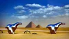 Stainless steel horses & wheels art exhibit at Pyramids - tribute to the chariots - Giza, Egypt 2024